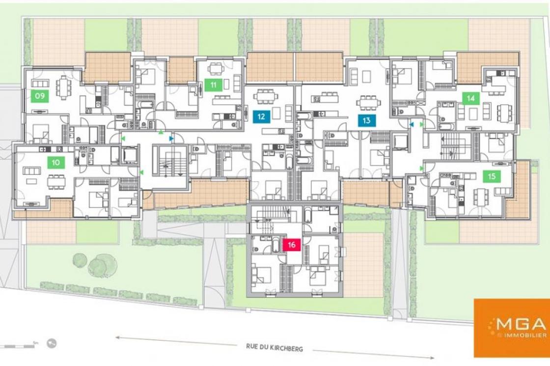 MGA Immobilier vous propose à la vente un appartement en l'état futur d'achèvement d'une surface d'environ 73,09 m2 (no14) situé à l'entrée du village de Kirchberg avec vue exceptionnelle sur la nature environnante.